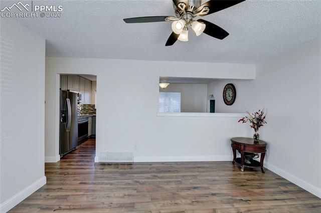 Stop right there! Secret rooms, gourmet kitchen and a full-blown pub?? This fully renewed home in South Colorado Springs has everything you need. It sits on a quiet street with beautiful mountain views and a warm, welcoming feel the moment you pull up. Inside, the stylish kitchen has been completely reimagined with custom cabinetry, granite counters, and stainless steel smart appliances—everything crisp, clean, and ready for everyday living or hosting friends. Downstairs is where this place really sets itself apart: a full Irish pub with wood floors, a handcrafted wood bar, working beer taps, a corner booth, and a game room. Whether you love entertaining or just want a cozy spot to unwind, this lower level delivers a one-of-a-kind space that’s hard to find. There’s also a secret room behind a bookcase—yes, a real one. You’ll have to come see it for yourself, but it offers ~200 extra square feet of freshly finished bonus space that’s perfect for a hobby room, studio, office, or anything else you need. Outside, the home continues to impress with lush established sod, an oversized back deck with a fire pit, new cedar privacy fencing, and a charming lamp post that gives the backyard a storybook feel at night. Modern smart-home features include security cameras, thermostat, smoke detectors, sprinklers, and connected appliances. Updates throughout the home include fresh interior and exterior paint, an impact-resistant shingle roof, new carpet, new laminate wood flooring, and upgraded 6” base molding for a clean, updated look. The location is incredibly convenient—just minutes to the Colorado Springs Airport, Peterson SFB, Fort Carson, and quick access to major highways, making daily commutes easy in any direction.