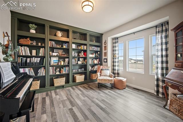 There’s something grounding about a home filled with natural light, mountain views, and space designed to truly live. Built in 2023, this 4-bedroom, 3-bathroom Colorado Springs home offers 3,300 sq ft of upgraded living space. It sits in a quiet, newer residential neighborhood near parks, open space, and miles of hiking and mountain biking trails, where daily life feels connected and intentional. With quick access to Woodmen and Powers, convenience and Colorado lifestyle align effortlessly. Inside, 9-foot ceilings and abundant natural light elevate the open-concept main level. Durable luxury vinyl plank flooring anchors the space, while a dedicated main-level office with custom built-in bookshelves offers a refined and functional work-from-home retreat. The kitchen features a walk-in pantry and flows seamlessly into the dining and living areas, ideal for everyday living and entertaining. Upstairs, comfortable carpeted spaces create a sense of retreat and include four bedrooms along with a laundry room featuring custom cabinetry. The primary suite provides privacy with an attached bathroom and walk-in closet. Front-facing windows frame mountain views and bring Colorado’s natural beauty inside. The northeast-facing backyard invites gathering with an extended concrete patio and backyard fire pit. A stubbed and capped gas line stands ready for a grill or future feature, while a soffit outlet simplifies seasonal lighting. Sustainable native landscaping, a fully fenced yard, and an underground sprinkler system complete the outdoor space. The insulated extended-length 2-car garage with built-in shelving adds year-round functionality and organized storage. The unfinished basement includes bathroom and wet bar rough-ins and offers clear potential to expand with additional living space, a guest suite, or recreation area. Modern construction, intentional upgrades, and a location that balances convenience with outdoor access make opportunities like this increasingly rare.